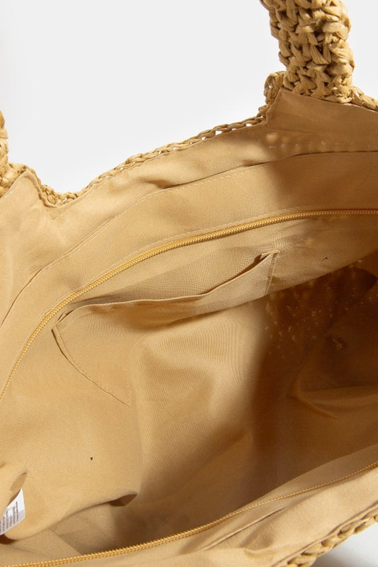 Fame Straw Braided Square Tote Bag
