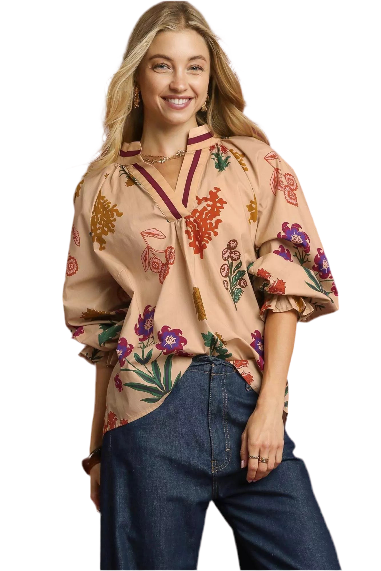 Step into spring with this elegant floral print flounce sleeve blouse. The delicate floral pattern adds a touch of femininity and romance to your outfit. The flounce sleeves give a trendy and stylish vibe to this classic piece. Perfect for dressing up any casual or office look with a hint of sophistication. Pair it with jeans or a skirt for a fresh and chic ensemble.